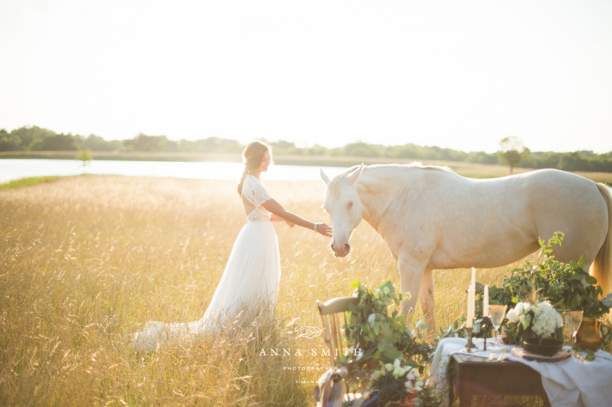 Foto: ANNA SMITH PHOTOGRAPHY/design a koordinátor:KEESTONE EVENTS/místo konání:BIG SY EVENT HALL/šaty:WATTERS/květiny:LIZZIE BEES'S FLOWER SHOPPE/pronájem:RENT MY DUST/účes a makeup:Q MAKEUP ARTIST/pozvánky:ART BY ELLIE/dort:SUGAR BEE SWEETS/kůň:RUSH RANCH
