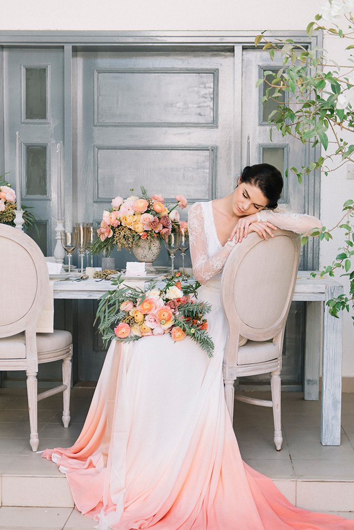 Takové jsou zde šaty nevěsty,které jsou zbarveny od broskvové po korálovou.