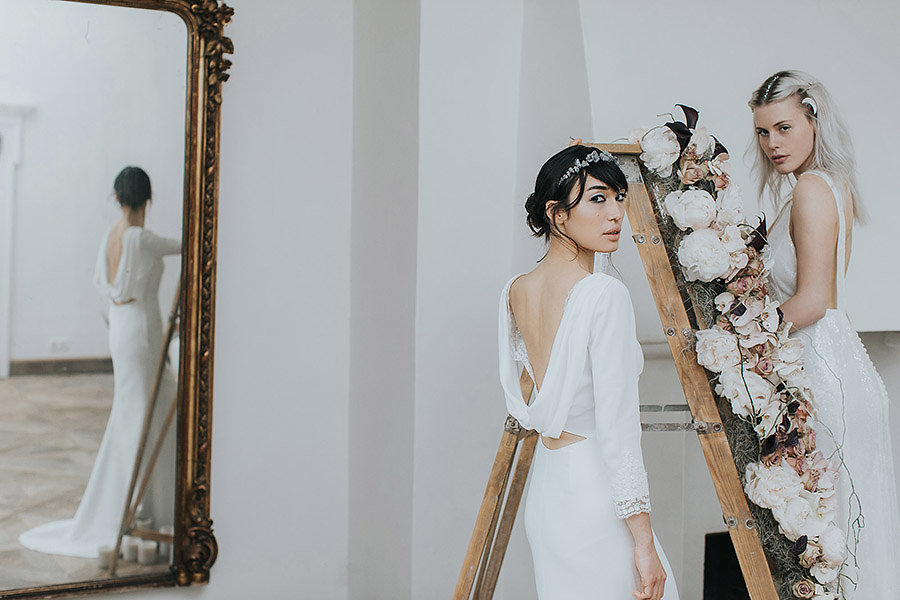 Event Planning & Styling Kiss from Fleur I Fine Art Photography Cornelia Lietz I Hair and Make up Natalie Arslan I Dresses Rime Arodaky, A la Robe, Anna Campbell I Headpieces Naturae Design I Ring Anna Sheffield I Stationery Nice Plum I Cake Kiss from Fleur I Glasses Malfetti Glasses I Venue Anna van Neerhave Fotolocation NRW I Featured on White Magazine