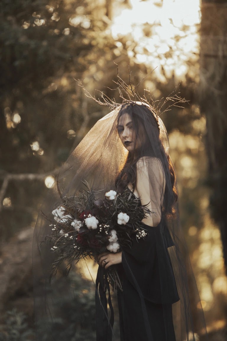 Tato inspirace útěku byla vytvořena pro pár, který miluje temnější a náladovější prvky. K útěku by došlo v noci na Halloween, aby se vytvořila nálada a tma pro natáčení.