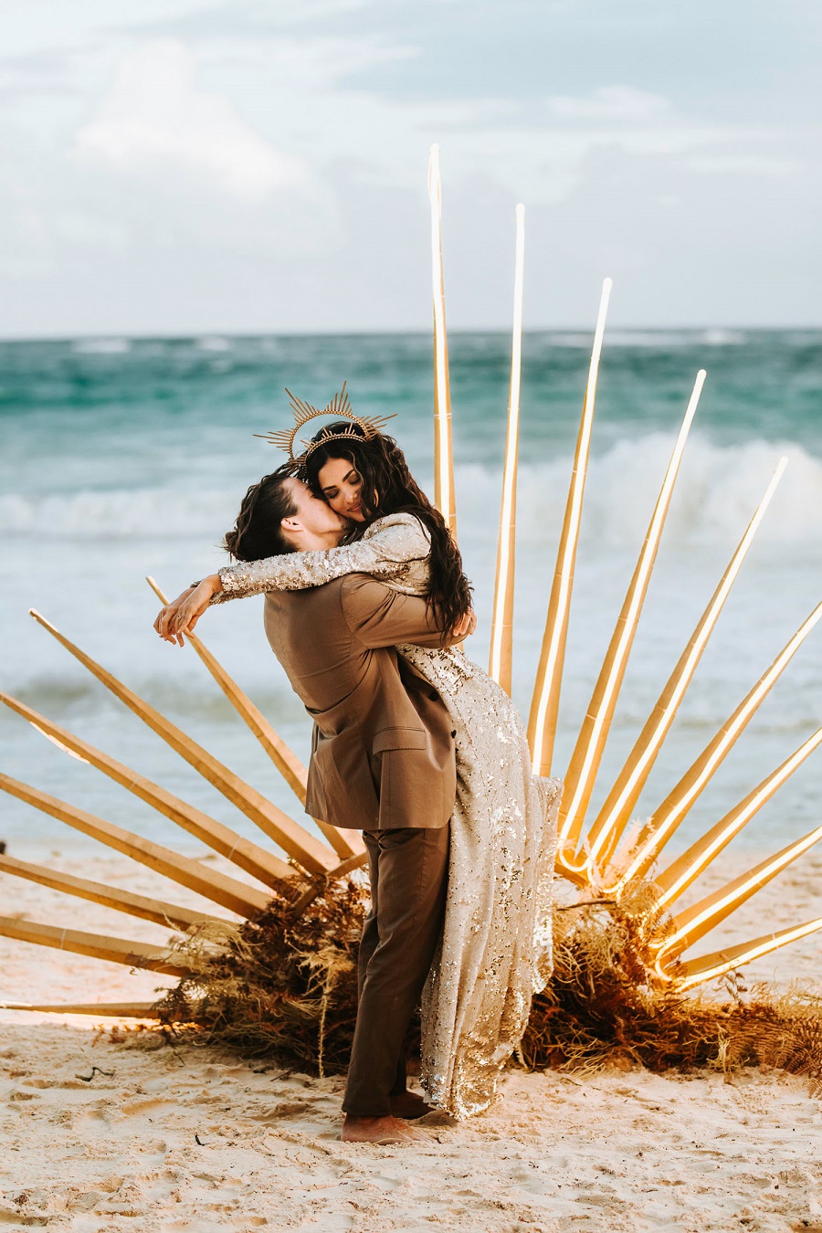 Tato nebeská svatební inspirace v Tulum je odvážným novým pohledem na oblíbený trend. Tento snímek je o toku života a magické energii, která nás obklopuje na naší krásné planetě.