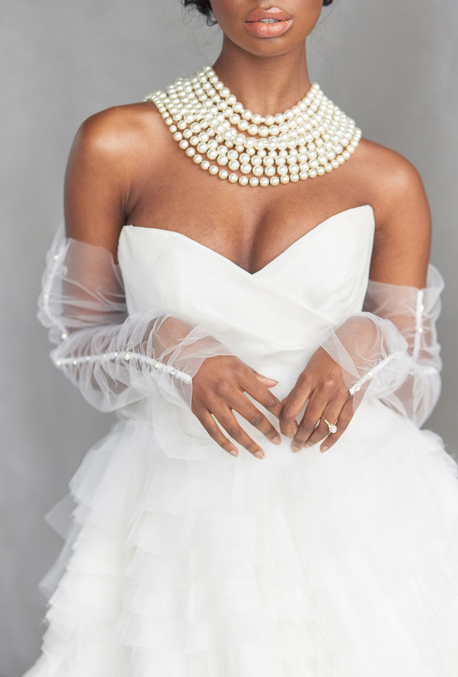 Od detailů lustru až po líčení nevěsty - perlu najdete všude, kam váš pohled padne. A těch šatiček !