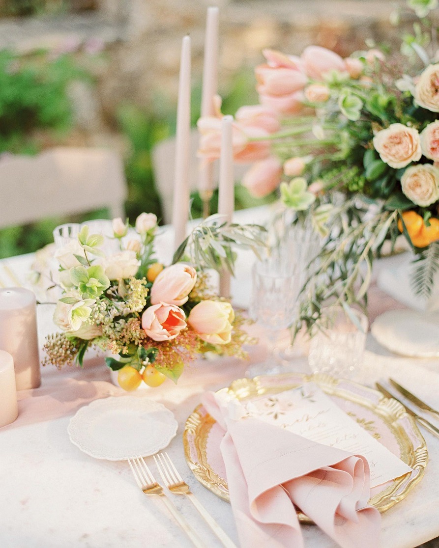 Tak snad se i u nás dočkáme léta, když jaro se ještě ani neukázalo v plné síle. Zatím se můžete inspirovat letní svatbou v Řecku. Krásné pomerančové květiny oživují oranžové Kumquaty, které zdobí i dort.