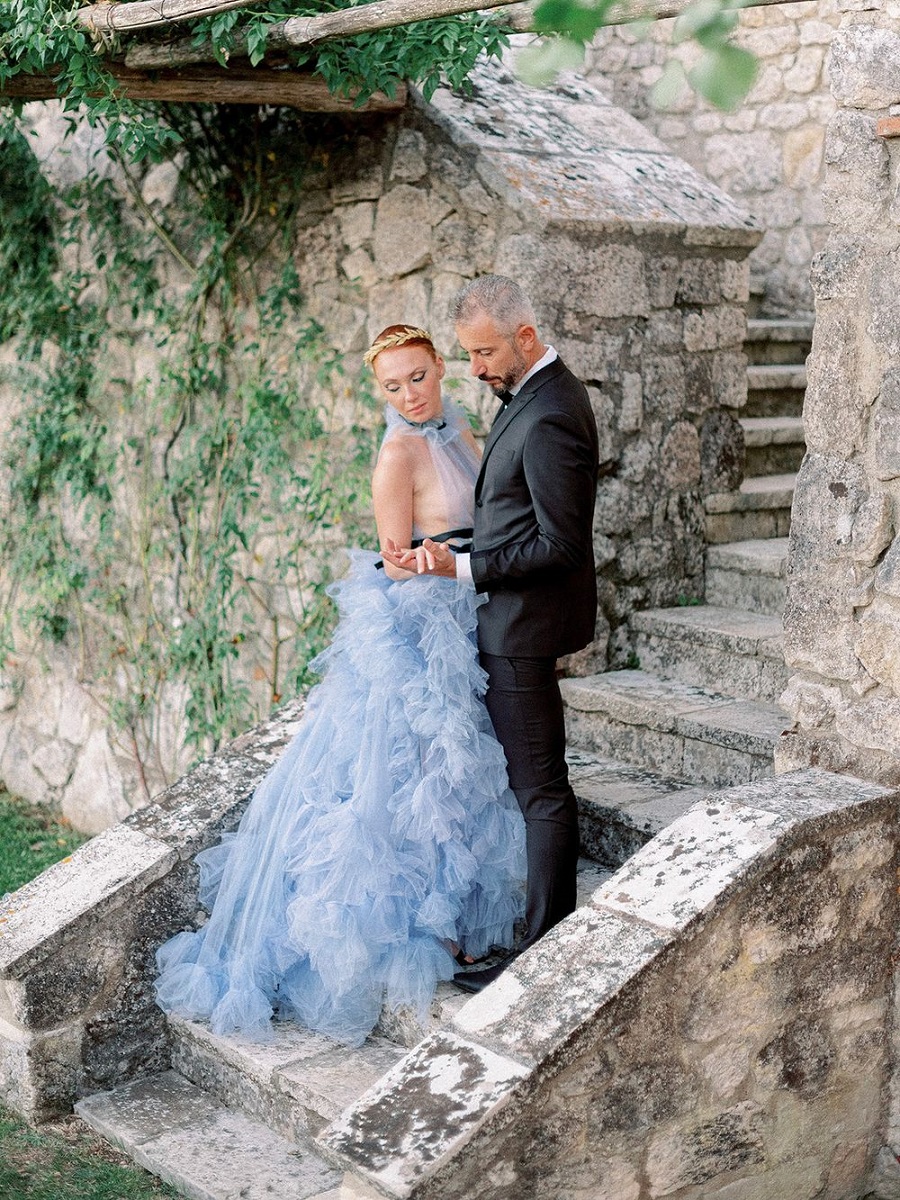 Krásná svatební inspirace ve které se nám nevěsta převlékne do nádherných modrých šatů od Millia London.