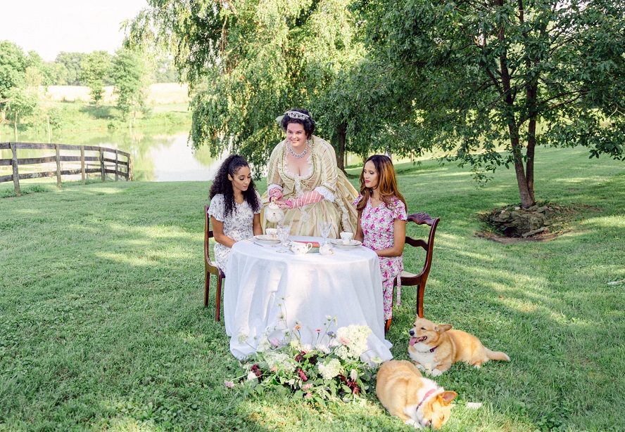 Foto: Carly Rose Photography | Místo konání: Great Room Hunt Country At Mortgage Hall | Design, koordinace a pronájmy: Blooming Arrow Events | Květinový design: One Last Avocado | Čajové nádobí: Tea With Lady D | Design dortů a sladkostí: Salted Sprinkle | Katering: Chiqui Chef | Svatební šaty: Carmens Bridal Gown Rental | Šaty na čajovou párty: Virginia Dare Dress Co.| Pánský oblek: Kashiyama 1927 | Vizážisté: Glam By Merve , Virginia Beautify Me Glam Studio | Kaligrafie: Blissful Creations By Jess | Pozvánky: Jen Simpson Design | Modely: Sara Bee, Taylor Jackson, Kyle Jackson | Psi: Masha The Corgi | Kůň: Twin Creek Farm