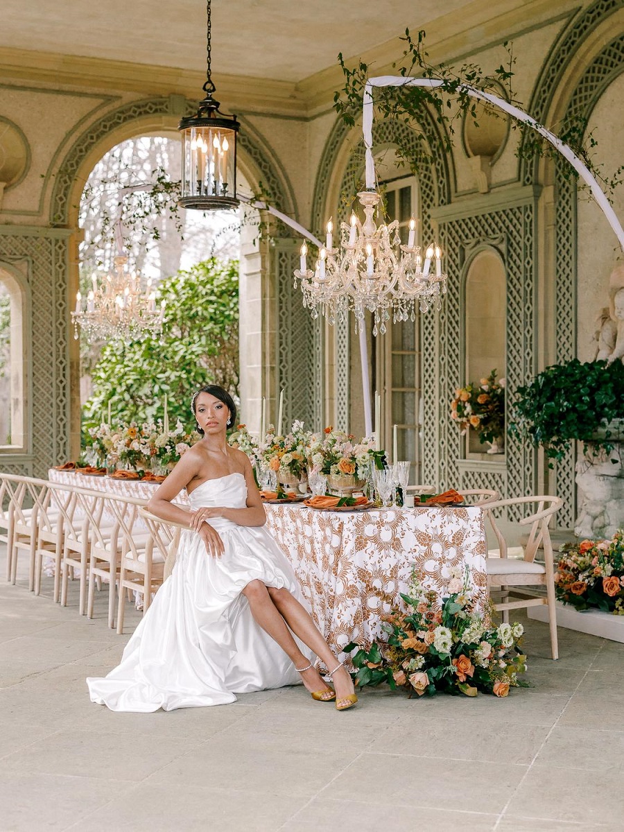 Francouzsky inspirovaná podzimní svatba. Místem pro tuto inspiraci byl nádherný Glen Manor House v Portsmouthu, RI, kousek od Newportu. Toto historické sídlo s architekturou ve francouzském stylu a krásně upravenými zahradami poskytlo perfektní prostředi pro toto natáčení. Všechny svatební šaty navrhla londýnská návrhářka Mara Marie Bridal.